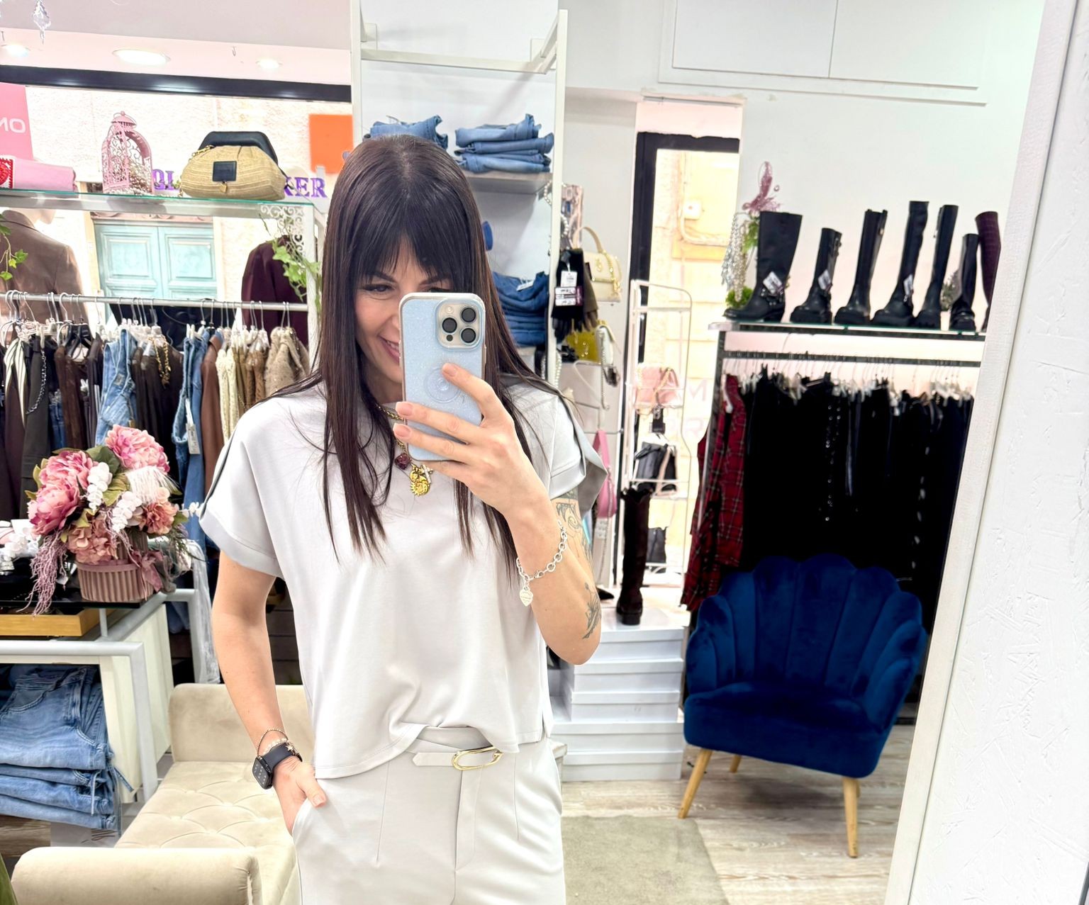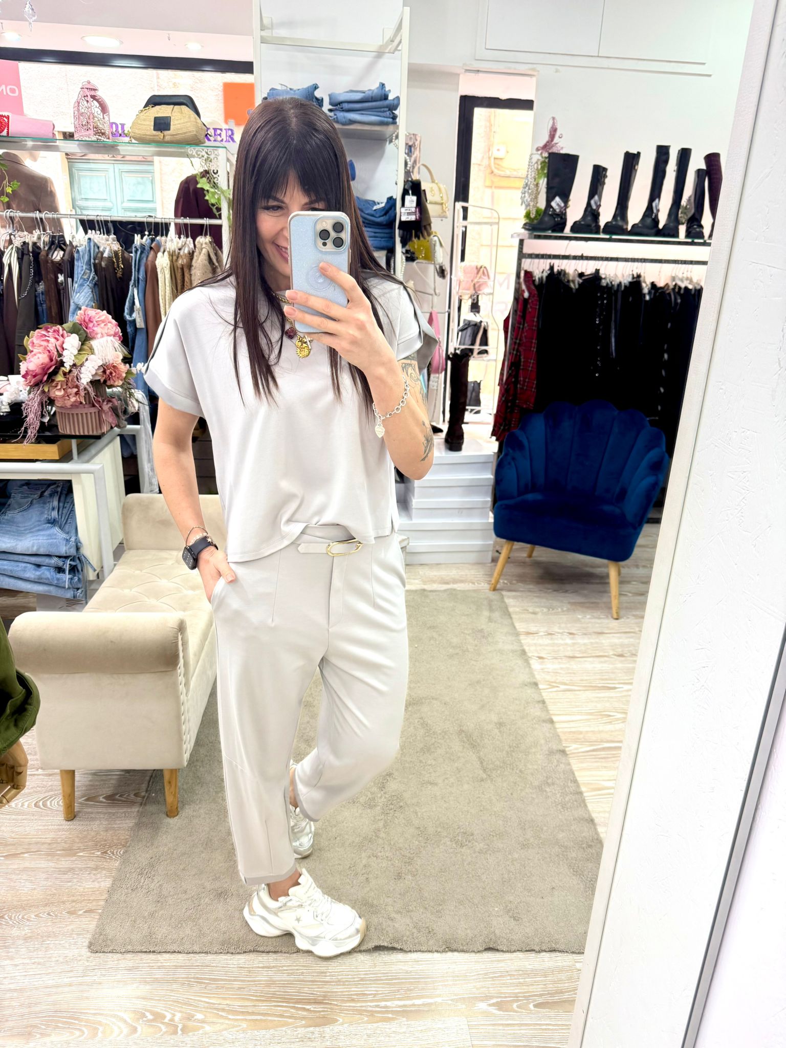 Blusa Imperial in punto Milano colore perla. Da abbinare al Pantalone Pera Imperial (se disponibile).
