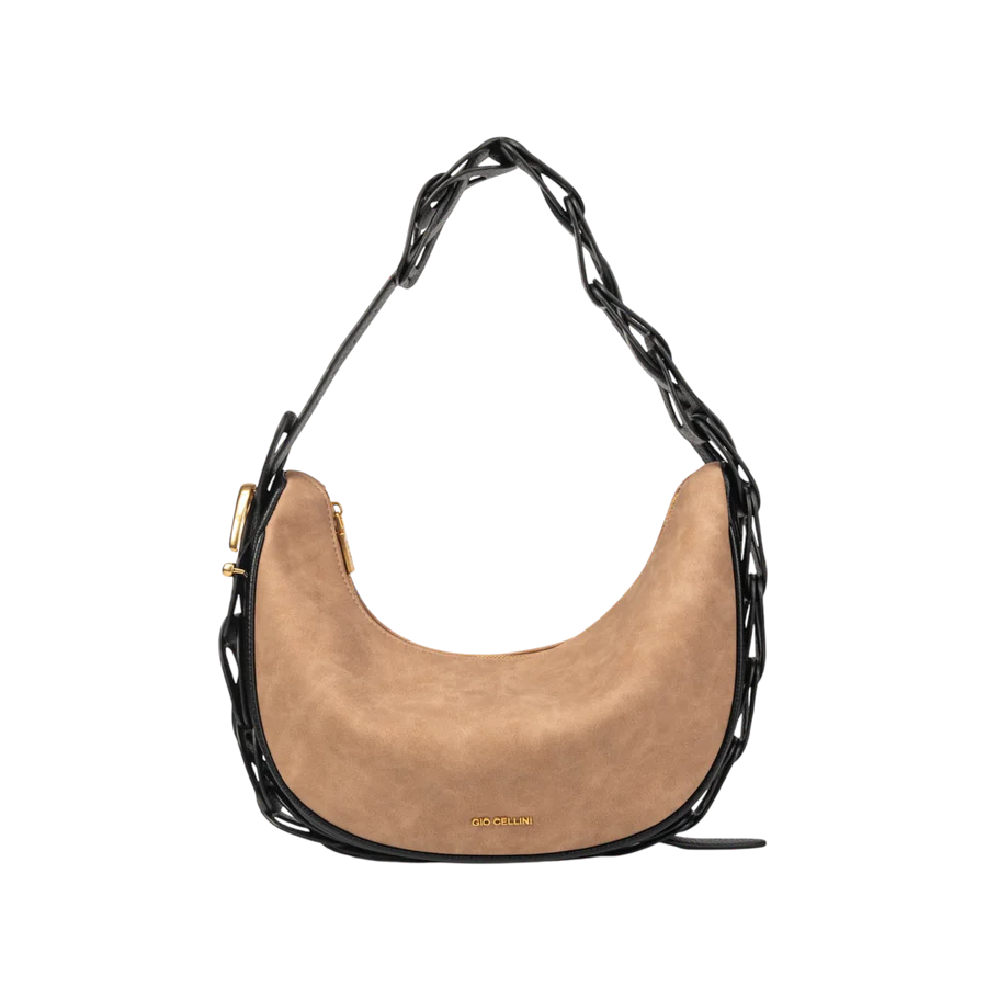 Borsa in ecopelle martellata con logo GIO CELLINI lettering finitura dorata