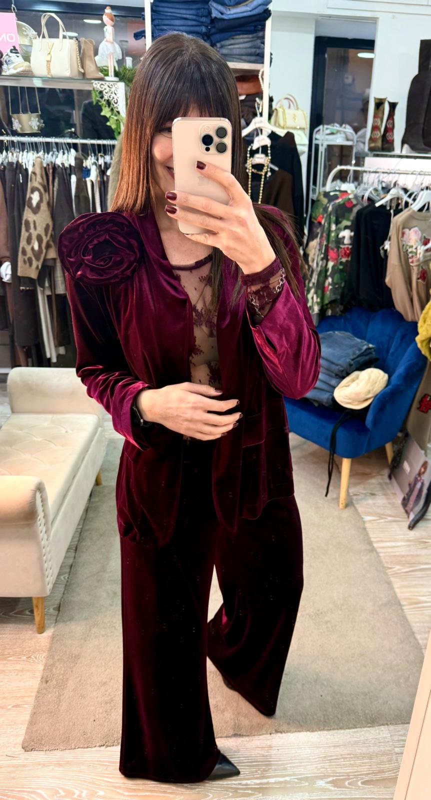 Pantalone in velluto con elastico in vita.