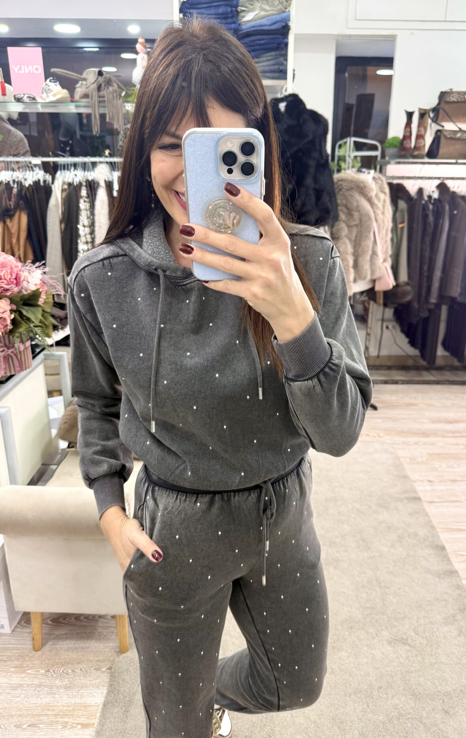 Felpa con cappuccio felpata con borchie a completo con il suo pantalone