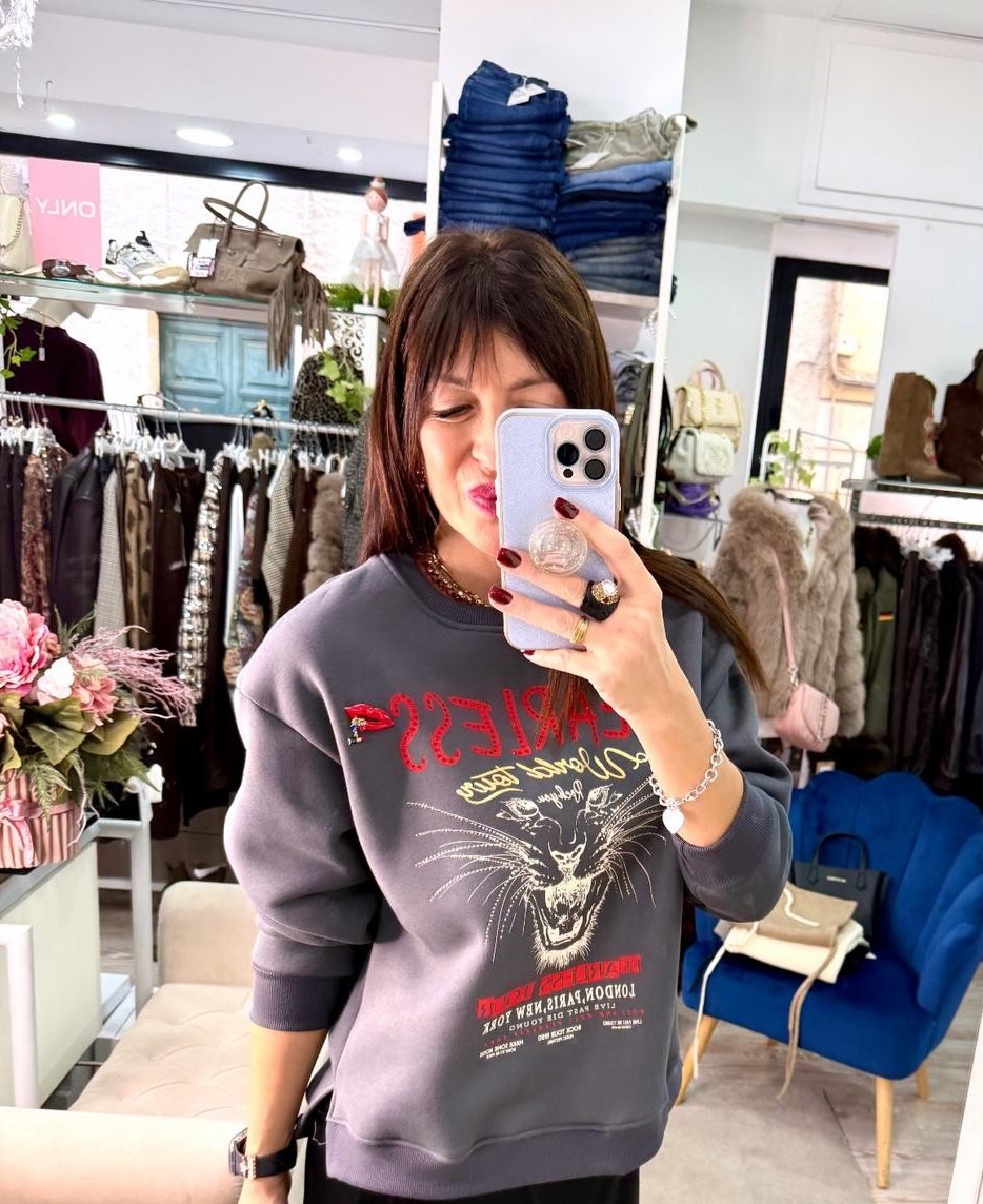 Felpa con stampa rock del brand Susy Mix color grigio.