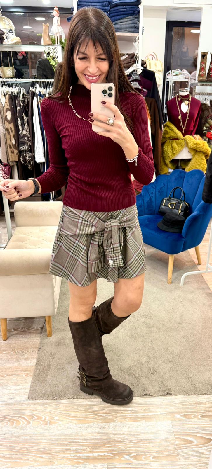 Recensisci per primo “Gonna a fantasia check con bottone prezioso Motel”