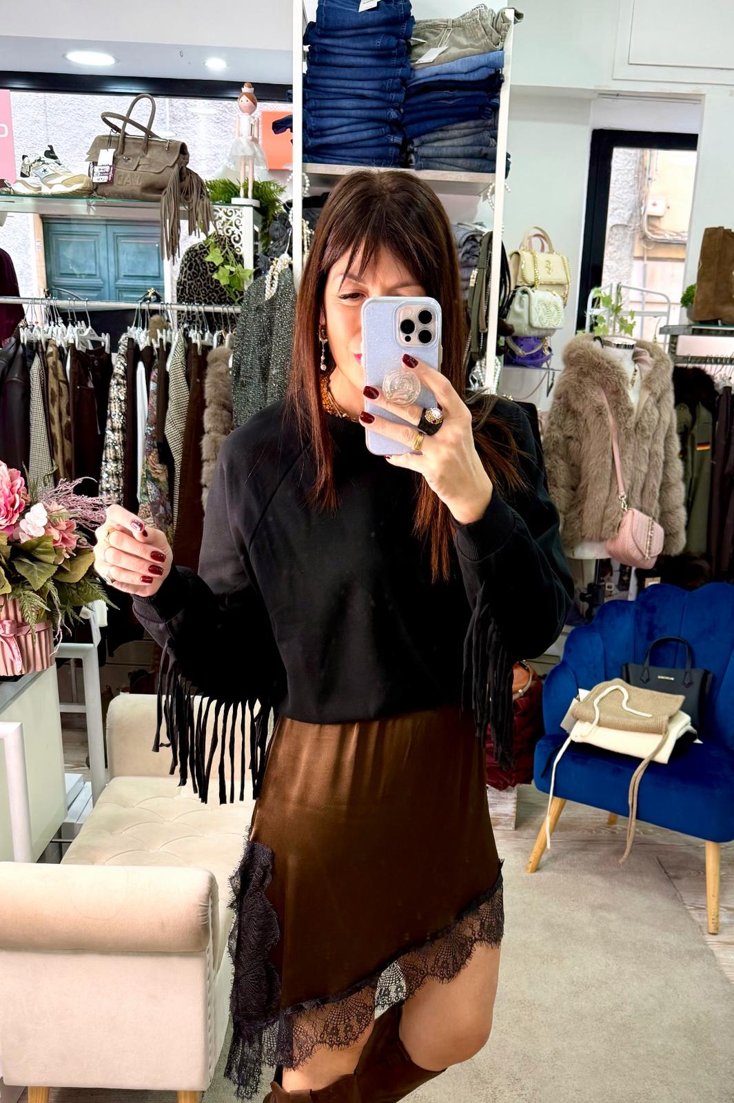 Gonna in lingerie del marchio Brend color liquirizia e nera.