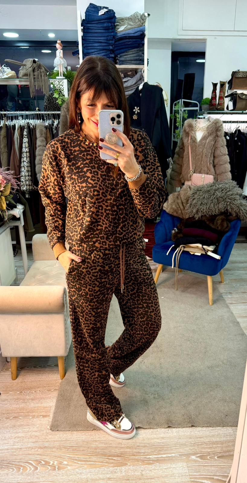 Pantalone animalier felpato con coulisse in vita Only