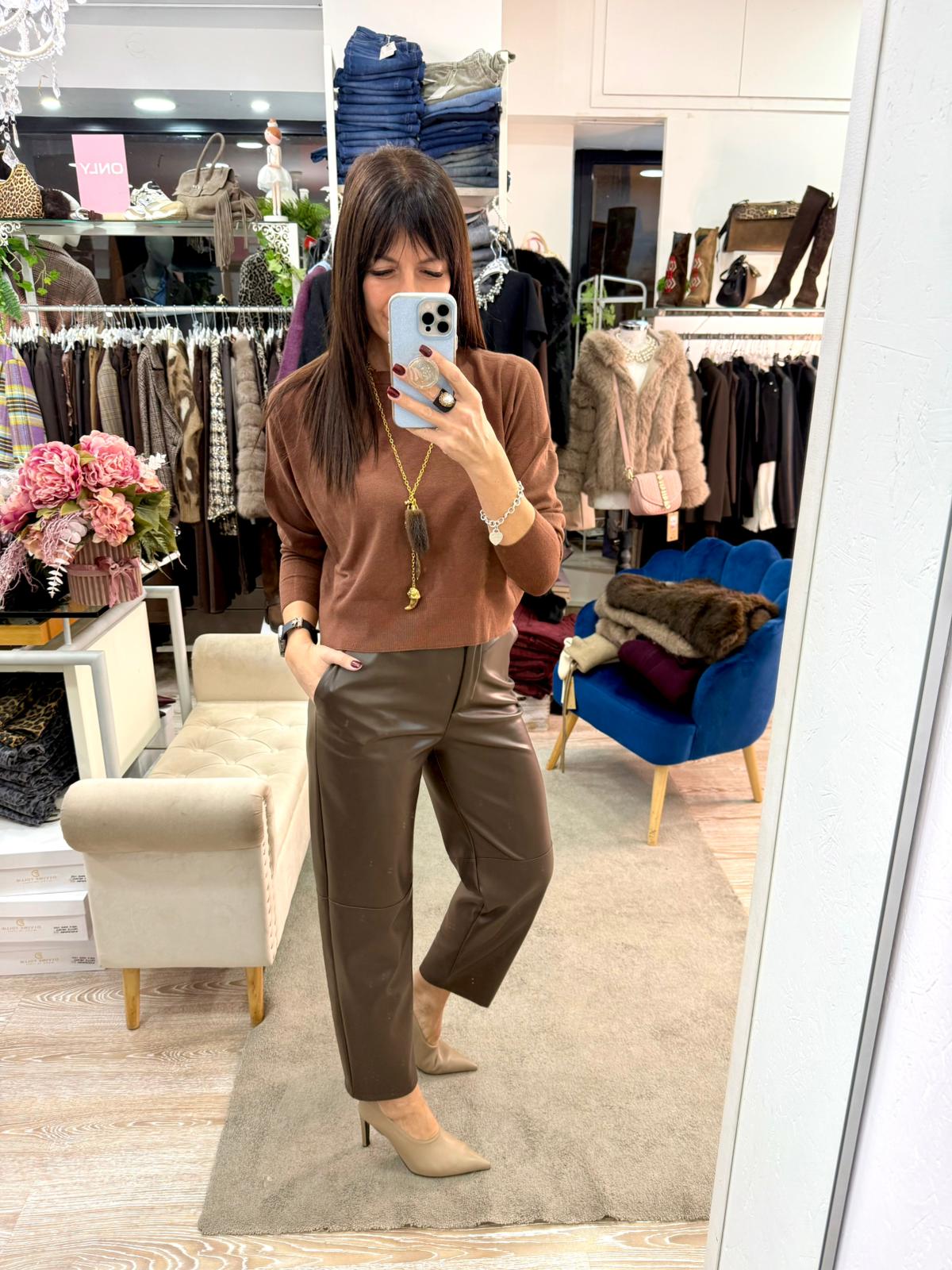 Pantalone Imperial in simil pelle dal fit asciutto e color moro.
