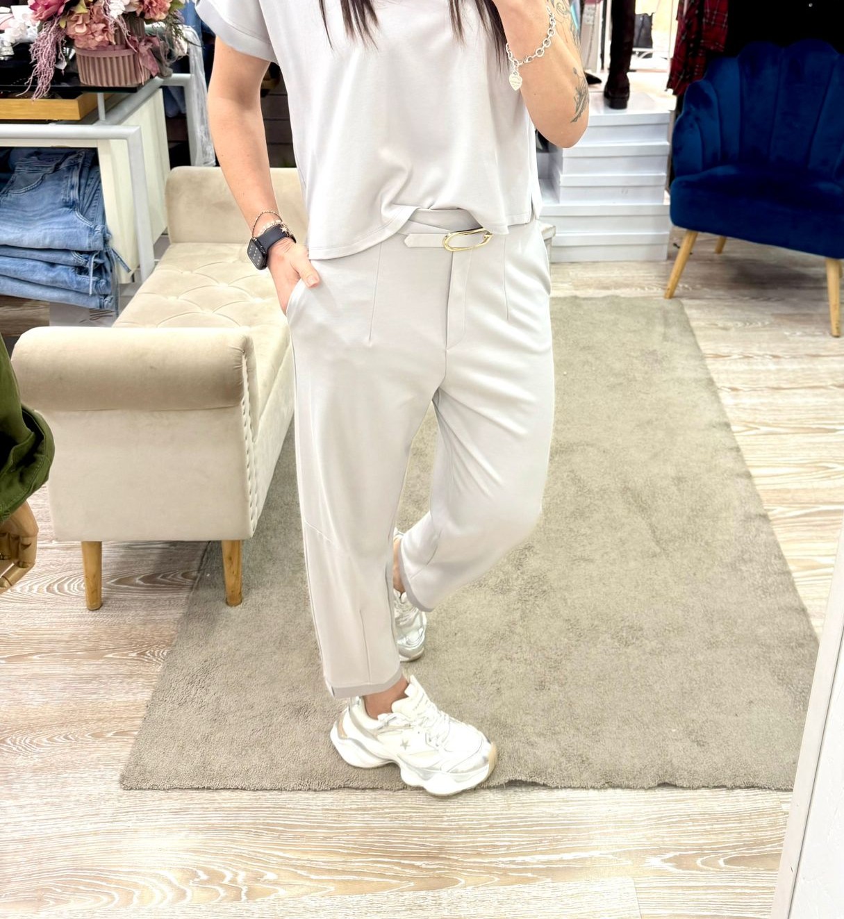 Pantalone Imperial in punto Milano colore perla. Da abbinare alla Blusa Pera Imperial (se disponibile)