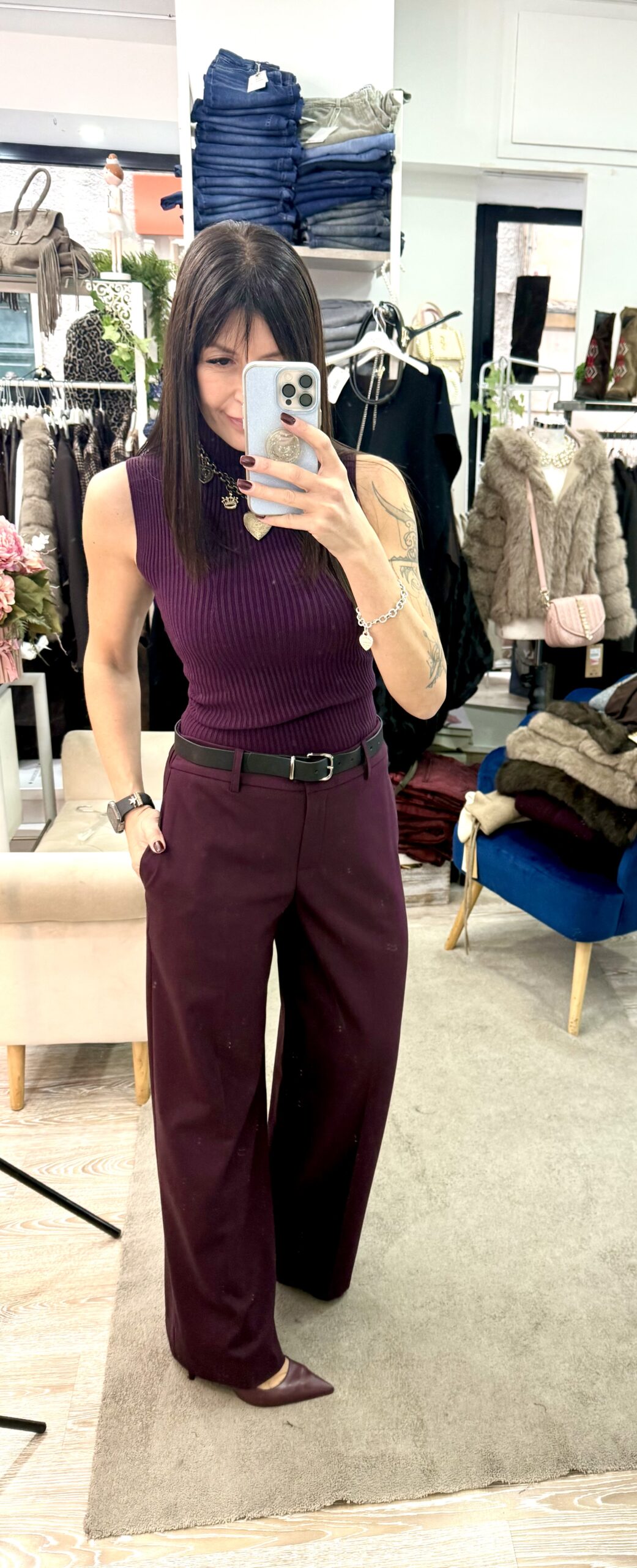 Pantalone completo Motel con cinta, modello gamba larga. Giacca Completo Motel abbinabile (se disponibile).
